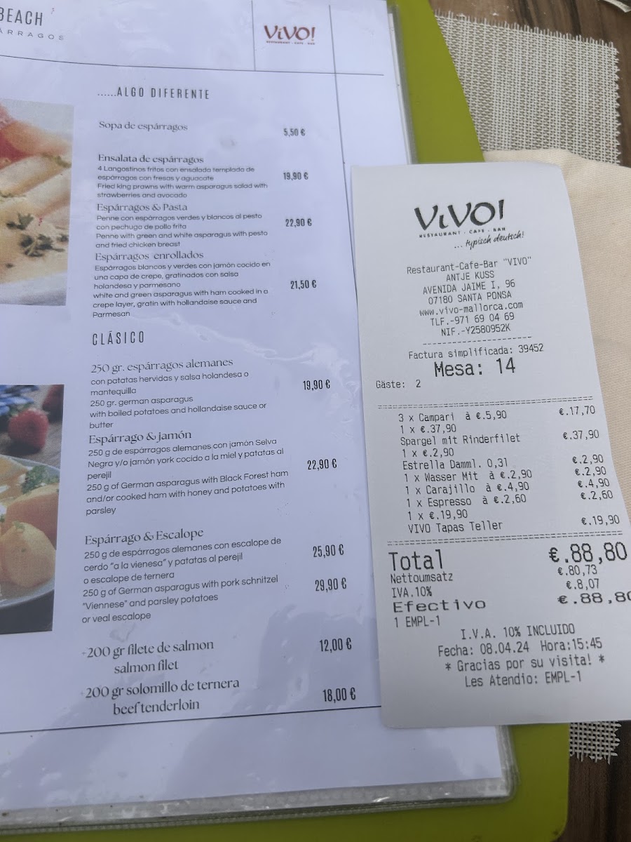 Introducing the menu at VIVO! - Illes Balears, a culinary gem located in picturesque Santa Ponça. The restaurant’s charm is evident through its vibrant outdoor seating and a welcoming atmosphere. Renowned for its delectable dishes, VIVO! offers an impressive variety, ensuring there’s something for everyone. Guests rave about the Chicken Piccata and succulent Shrimp Pasta, both bursting with flavor. The fish and spaghetti is also a standout, praised for its freshness. Not to be overlooked, the crispy fries are a fan favorite, perfectly complimenting any meal.